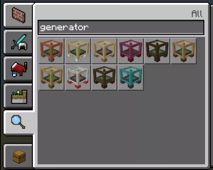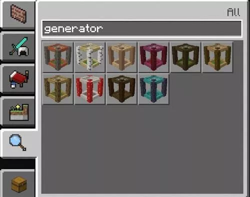 The creator of the mod offers a total of ten generators for crafting: