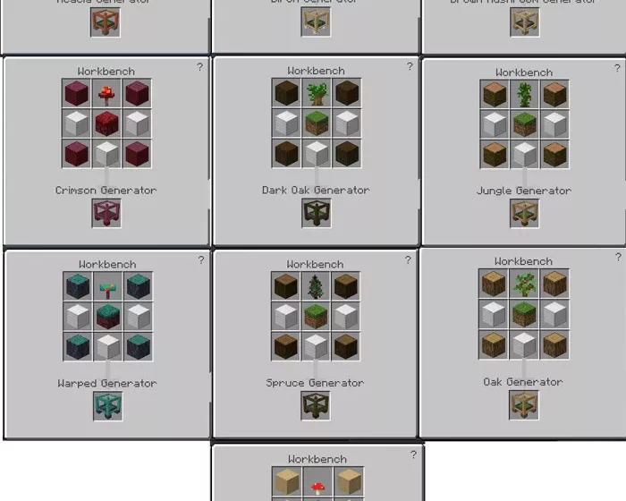 With the TREE’S Generator mod, you will no longer need to chop down trees in Minecraft on Android. Instead, after installing the mod, you’ll be able to craft several generators that will provide you with resources.