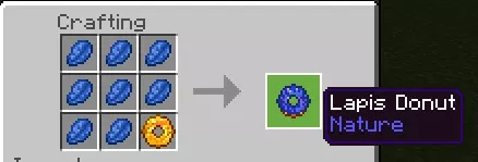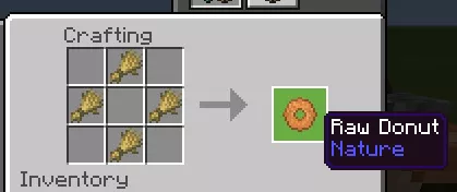 All crafting recipes are shapeless, meaning you can arrange the items in any order. Before crafting any type of donut, you must first create a basic one and then add an additional item to it.