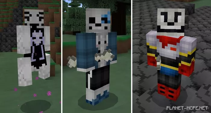 There are also three bosses. The only way to defeat them is to tame several Undertale characters. Their health and attack damage in Minecraft Pocket Edition may be a glitch, as they are extremely powerful.