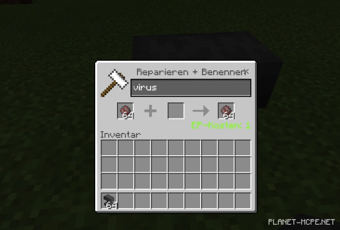 To create such a virus, you first need to rename an item of your choice (any item will do) to “virus” (all lowercase letters).