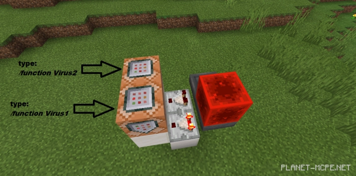 The package feature “Virus (Вирус)” introduces a virus into all the worlds of Minecraft that you desire. The engine generates a virus that eliminates cows, sheep, and villagers in approximately 30 seconds. Additionally, there are various effects included to indicate the progression of the infection!