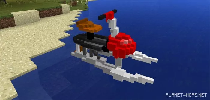 Have you always wanted to ride on water in MCPE? If so, download the mod called Water Bike for Minecraft Pocket Edition, and you’ll have the fantastic opportunity to cruise across the water on a brand-new jet ski! You can now travel using this new mode of transport, which, although a bit tricky to control, is definitely worth it! The bike looks quite appealing, but there’s room for improvement, and we hope the mod developers for MCPE will make some updates soon.
