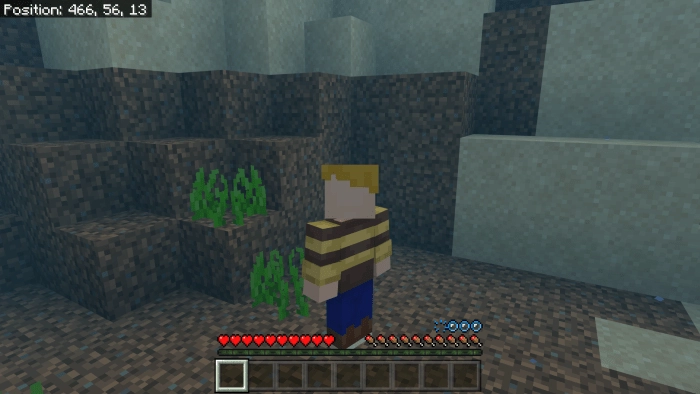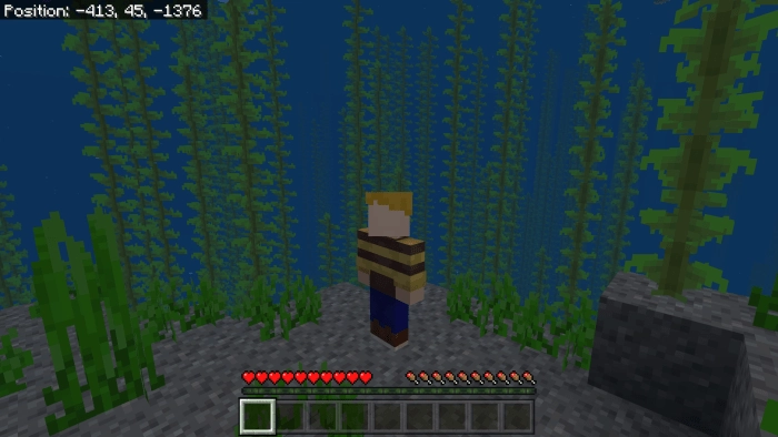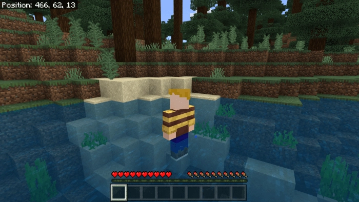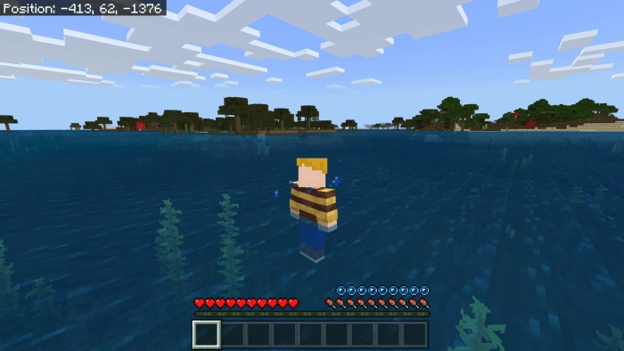 Surviving in the ocean depths of Minecraft Bedrock Edition will be relatively easy for you. However, a mod called Water Man imposes a restriction on how long your character can stay on land. You will have only fifteen seconds before the hero’s health points in Minecraft BE start to gradually decrease.