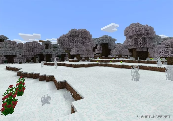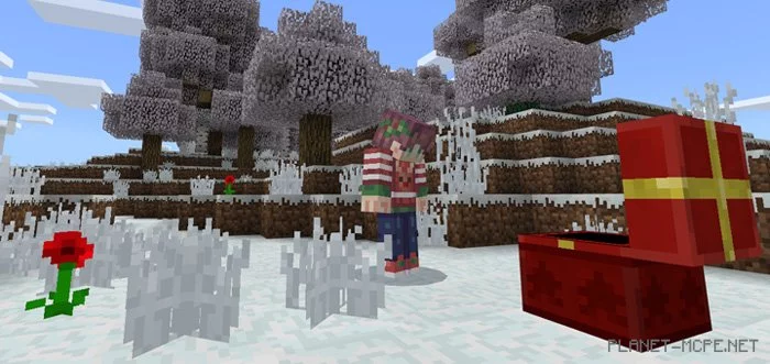 The mod «Winter Season» bears a strong resemblance to the well-known modSeasons, with the key difference being that this addition keeps the world of Minecraft Pocket Edition in a perpetual winter state. This applies to all biomes featuring grass and leaves, such as plains and forest biomes, but not deserts. It’s a fantastic way to embrace the holiday spirit or simply a delightful option for those who truly enjoy winter landscapes.