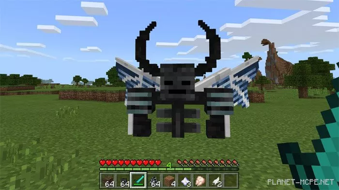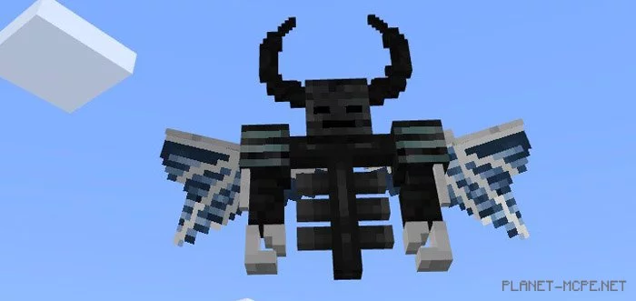 You have been playing Minecraft PE for quite some time, and are you eager to face a new Boss? We are excited to introduce the mod titled Wither Demon Boss for Minecraft Pocket Edition, which transforms the existing Wither and adds unique features such as the ability to fly, climb walls, and launch dangerous projectiles at players! Visually, this Boss resembles the Wither from the MCPE universe, but the new mob boasts two angelic wings and two horns. I can assure you, this Boss is far from being an angel!