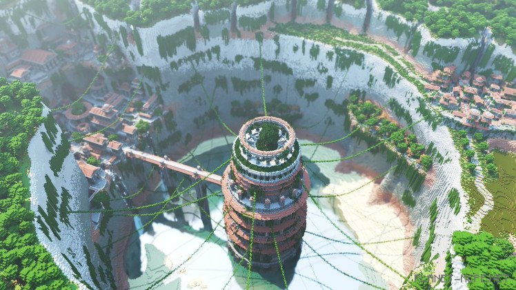 It may sound like our builder is so talented that he can create whatever he desires, possessing skills both in construction within Minecraft PE and architecture. However, the truth is much simpler. “I just wanted to find a spot to build the tower. And then everything fell into place…” the artist reveals.