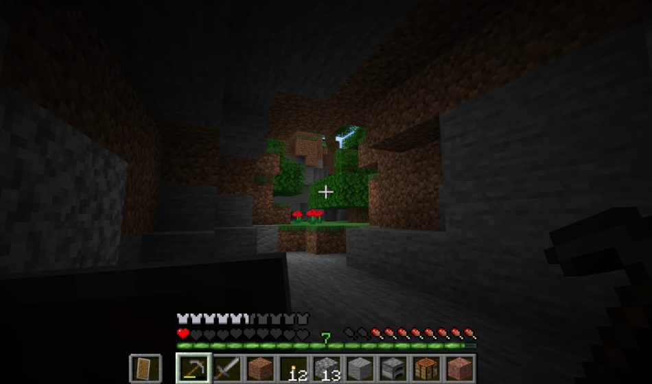 Initially, I gathered enough wood and then quickly sought shelter from the seemingly deadly ultraviolet rays. To my surprise, I discovered that my underground hideout was inhabited by several skeletons, so I decided to simply sit tight and wait for nightfall to finally eat… and escape the humiliation.