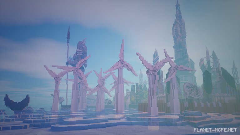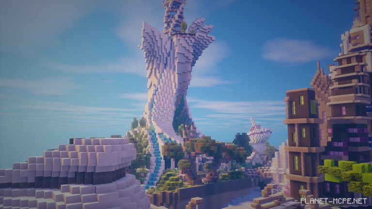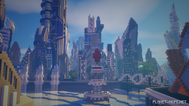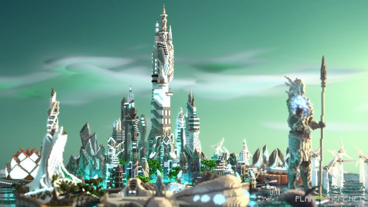 The final result is stunning in MCPE—it’s part futuristic sci-fi, part Atlantis, featuring elements that could fit into the city of Zora from the latest Zelda game and the underwater city of Gungan from Phantom Menace.