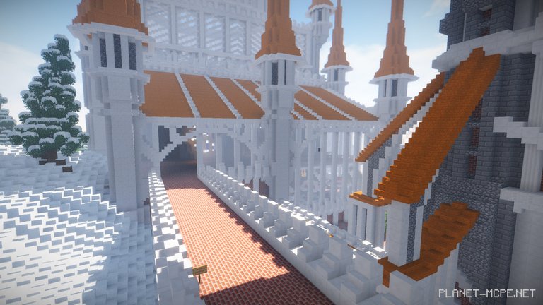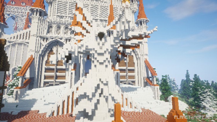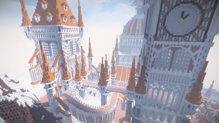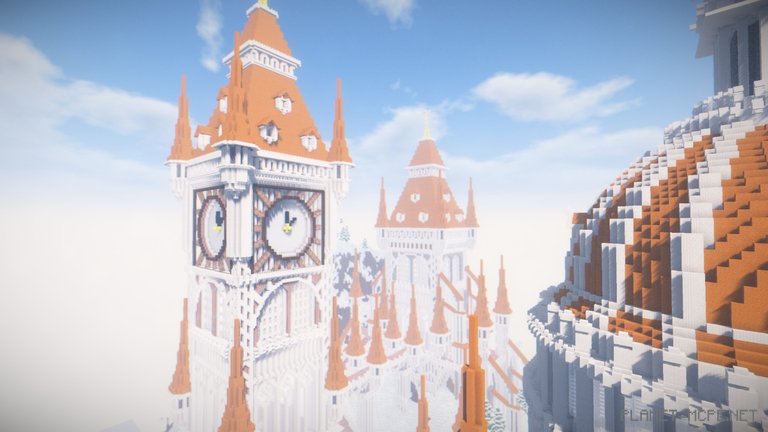 This brilliant decision gave Roklavia its distinctive, dazzling appearance, making it resemble a city made of pure marble, perfectly blending with the surrounding atmosphere of snow-covered trees. To grasp the magnitude of Musical_Mystery’s efforts, one only needs to look at the clock face and orange peaks.