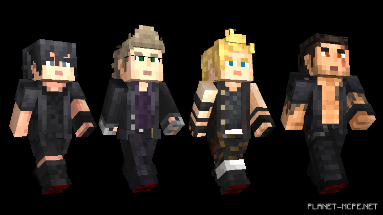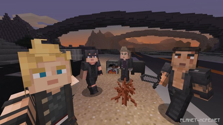 Today marks the launch of the Final Fantasy XV Skin Pack, featuring the quartet from The Kingdom of Lucis: Noctis, Ignis, Prompto, and Gladiolus! Alongside these characters, a plethora of new figures will join Minecraft PE: heroes, monsters, and various creatures. Get your grill ready, pack up your tent, and ensure your seatbelts are fastened.