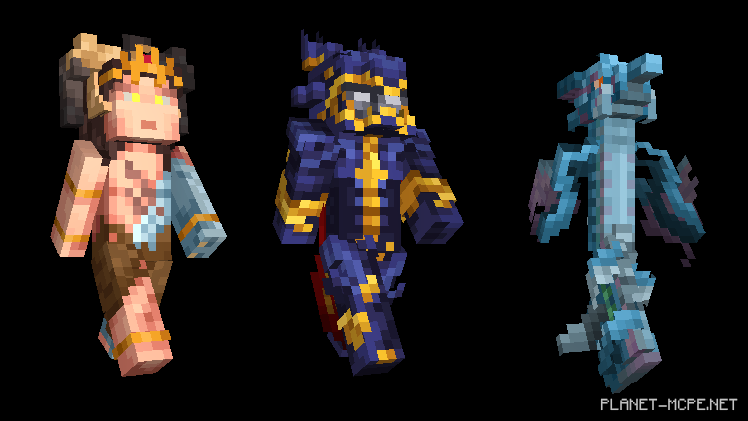 You’ll have access to 43 unique characters. Your entire Minecraft PE world will transform into Final Fantasy. Step into the shoes of the heir to Lucis and try to fend off the Endermen. If photography is your passion, Prompto’s skin is perfect for capturing those stunning screenshots. Chef Ignis will help you whip up the most exquisite mushroom stew.