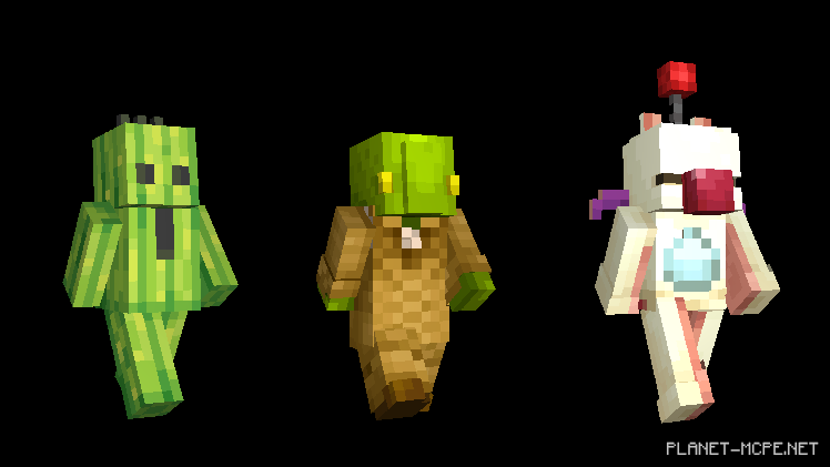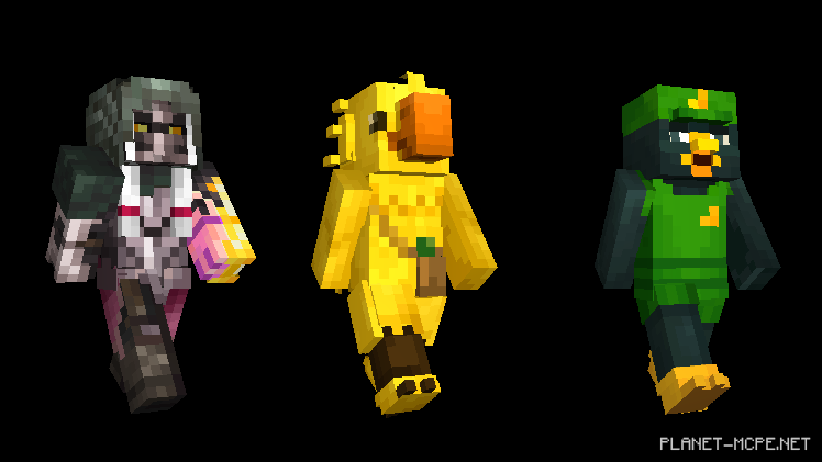 The developers have provided an extensive selection for every player of Minecraft PE! They also remembered their classics: Moogle, Chocobo, and Kaktus!