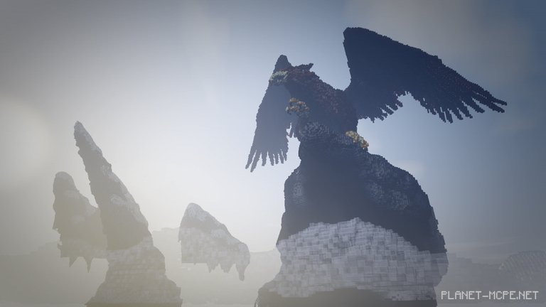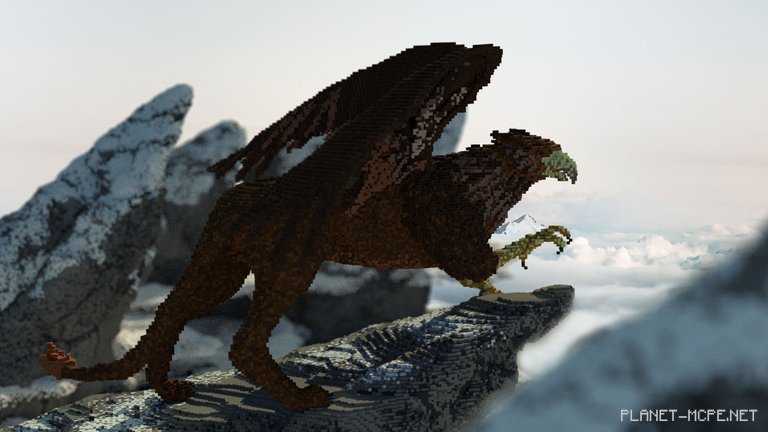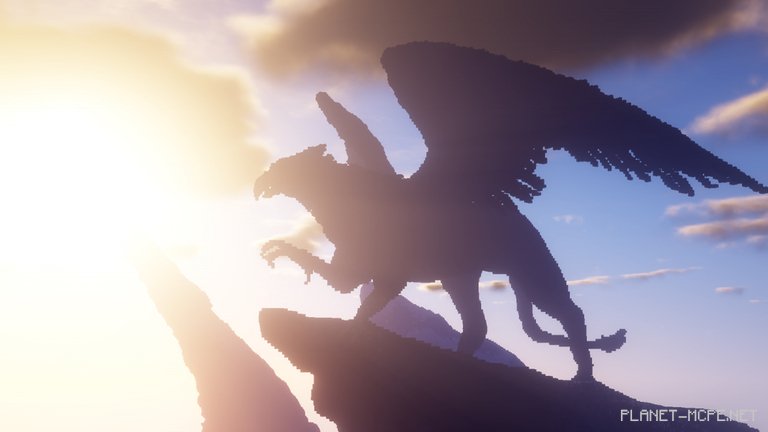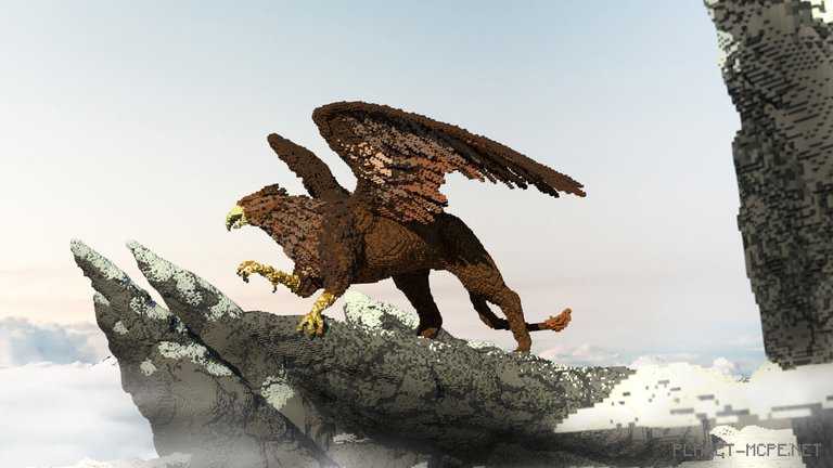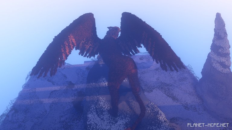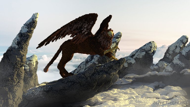 “I had artistic goals, such as capturing the true essence of the Griffin and adopting a more stylized approach to the atmosphere,” explains MegRae. “I intentionally made the mountains more whimsical by adding spikes. Overall, I wanted to create a sense of intimate presence with the Griffin—just me, it, and freedom. Admiring it in my own world of Minecraft Pocket Edition, where no one can witness the peaks of mountains and clouds.”