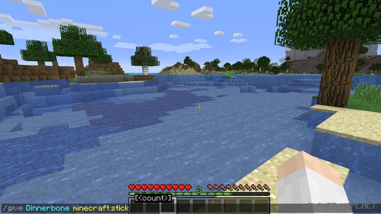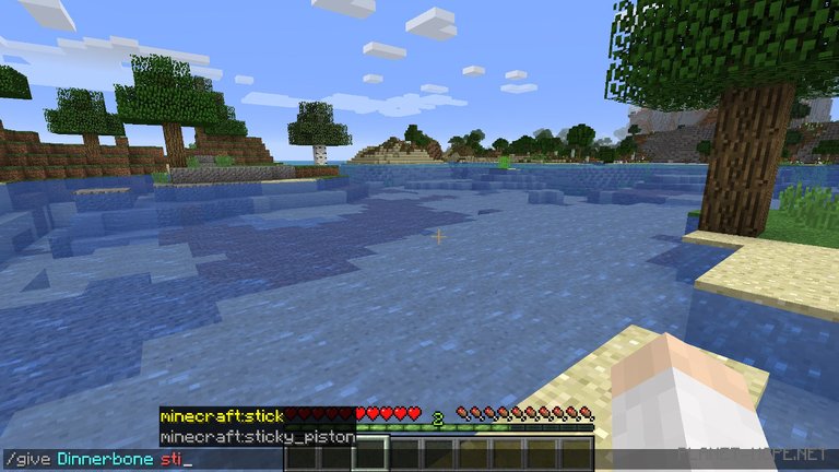 [2/3] – Each part of the command has its color. Thus, the command “give” appears in gray, the player’s name “Dinnerbone” in blue, and the item assigned “Minecraft/stick” is highlighted in yellow.