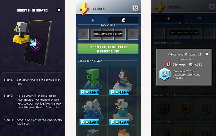 Fortunately, Minecraft Earth has given me a reason to get off my chair and step outside. However, there’s a downside: getting outdoors requires a minimal amount of willpower and energy, so I need something stronger, like the motivation to explore this world beyond just my backyard. Well, I guess I’m either telepathic or the developers at Mojang are geniuses, as they have teamed up with Mattel to release new Minecraft Earth Boost Minis! You might be wondering how a tiny, incredibly cute figure can motivate you to start exploring new places. Besides providing emotional support, each of these mini-figures offers a unique gaming experience. Their name, “Boosts”, speaks for itself. Players can gain perks such as reduced crafting times, extra experience points, expanded adventure capabilities, and much more. Every time you scan a figure, you earn experience points. So now, these mini-figures are like your new friends in Minecraft!
