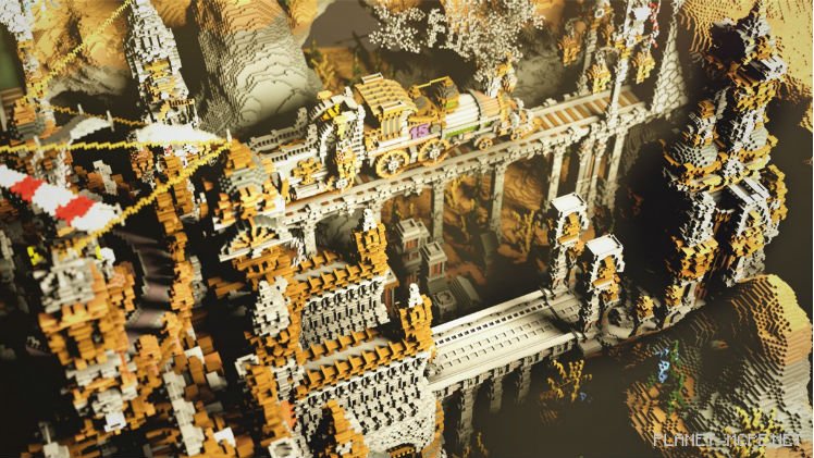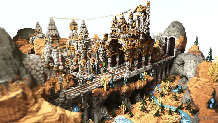 The Zathrus station is nestled in a small valley surrounded by mountains. It resembles a hidden castle with railway bridges soaring over rivers and large caves below. All of this is the work of our featured builder today. “This creation is my largest project in all seven years I’ve been working with Minecraft Pocket Edition. I dedicated a significant amount of time refining everything from the landscape to the tiniest details,” shares the creator.