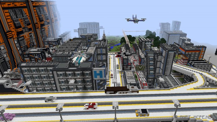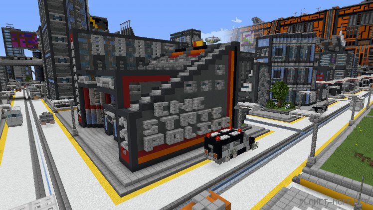 The city itself may appear quite ordinary at first glance, but a closer look reveals many unique details! PlasmaticStatic shares that he draws significant inspiration from the cyberpunk genre as well as various futuristic inventions found in Minecraft. “I’m also a big science enthusiast; you can see this throughout the build, for instance, with the 3D printed crane creating new structures.”