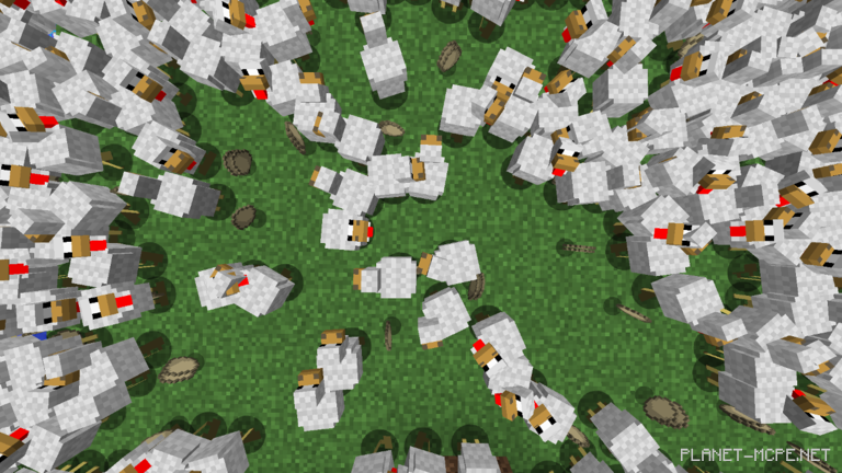 Try capturing images from various angles. For instance, a standard photo of chickens might seem dull and unexciting. However, if you elevate your position and photograph them from above, it becomes something amusing and intriguing. Just look at their faces; I believe these are the finest chickens in Minecraft Pocket Edition that I’ve ever seen!