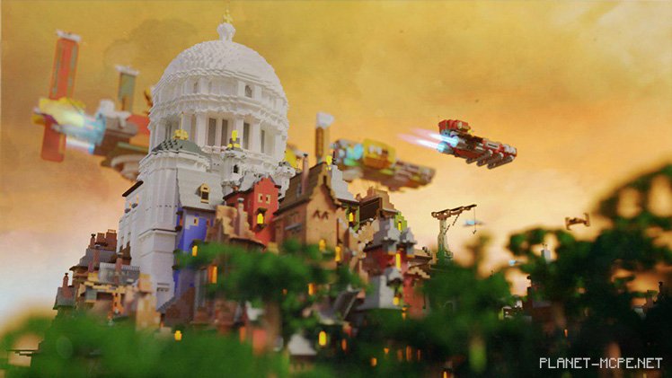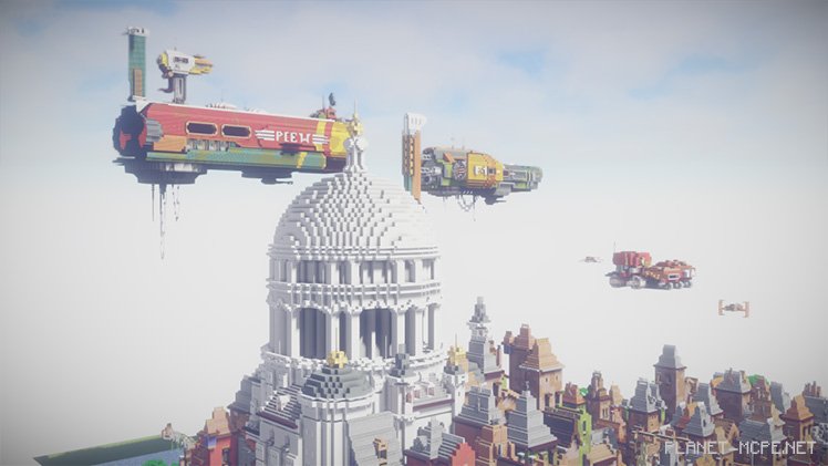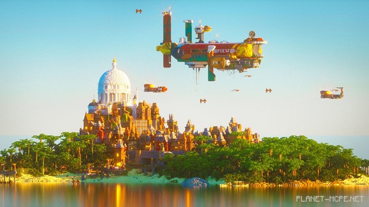 The homes occupying most of the city are built closely together or stacked atop one another, utilizing every inch of this tiny patch of land in Minecraft Pocket Edition. Lush tropical jungles flank both sides, providing pirates ample cover to hide their loot. “The toughest part of the project was making the island feel alive. It took quite a bit of time and numerous small details to achieve that,” shares the builder. Tyssen spent two weeks completing the assembly, dedicating four to eight hours each day adding character and detail to what he describes as a “sci-fi/slum aesthetic.”