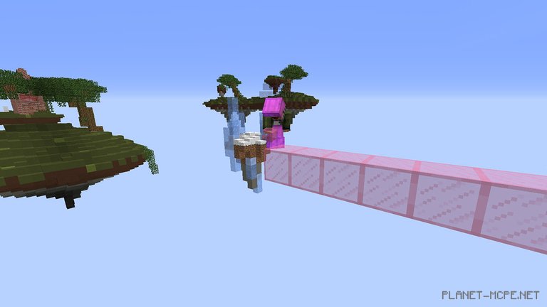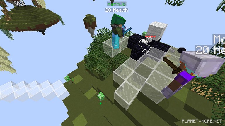 Mirage Wars is a team-based combat game set in the skies of Minecraft. Each team receives a target to establish a specific object in their home territory. As long as it remains intact, you can respawn after dying in MCPE. But if the opposing team destroys your object, your next death will be final. Discover where every resource stash is located on the map and gather enough to trade for new weapons and items. Controlling the area and its resources becomes especially crucial when the other team is equipped with diamond armor and elytra!