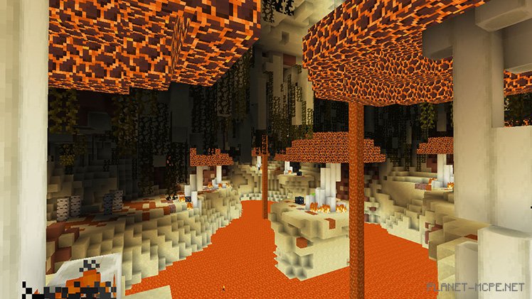Now let us introduce you to a map where you must complete the construction of a monument. This type of gameplay in Minecraft PE can be particularly challenging—the search for necessary elements may take considerable time and effort. Here, however, you’ll navigate through hordes of hostile monsters while collecting wool and assembling these blocks into a monument. The challenge intensifies with endless streams of lava, fire, explosions, and lava pits created by blasts, along with truly demonic traps that activate when you least expect them. One key lesson from playing Minecraft PE is to never let your guard down; otherwise, a cascade of sand blocks could fall on you, followed inevitably by lava and your demise.