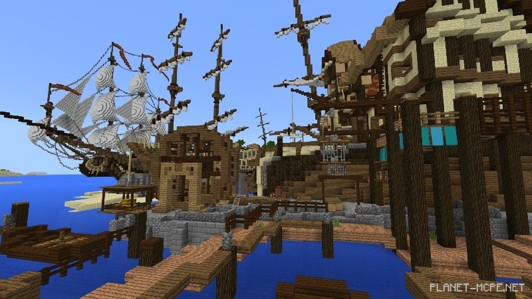 As a pirate, you’re always running from the law. But this is the place where pirates from all seven seas gather to start anew! Explore shipwrecks and uncover treasures in Minecraft PE! Crews over the centuries have salvaged parts to build a town, and now it’s your turn!