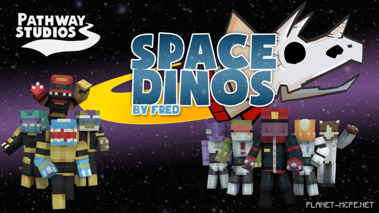 Prehistoric raiders have soared to the farthest reaches of space in search of treasure, adventure, and knowledge. Join this vibrant band of astronaut dinosaurs for your next interstellar escapade in Minecraft Pocket Edition!