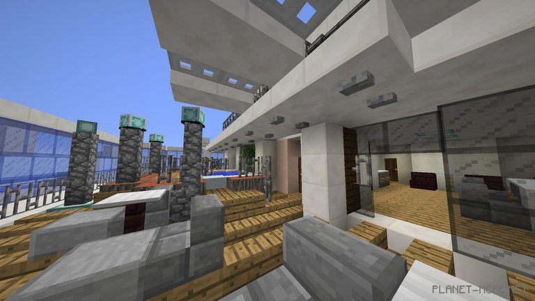 “Once the exterior was complete, we moved on to the interior.” The voyage to Azamara differs from the smaller ships I’ve built before,” says Dave. “However, the interior adds complexity to the construction. The theater and the bridge were the most challenging aspects – we had to incorporate numerous details, but I truly enjoyed working on them in Minecraft Pocket Edition.”
