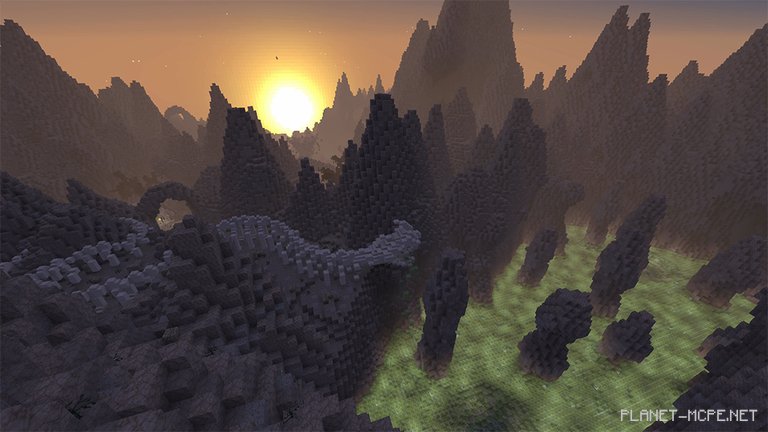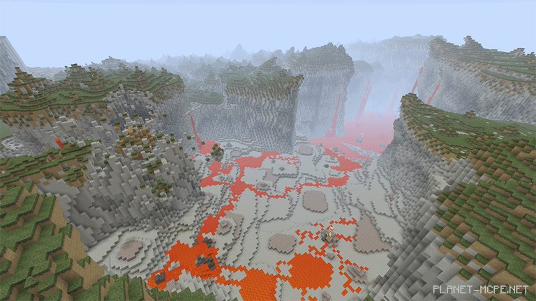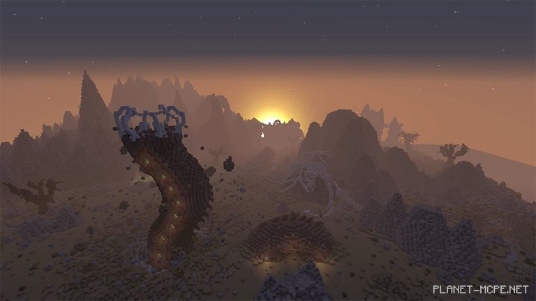 Venom lakes, skeletal serpents, and towering demons the size of skyscrapers are just a glimpse of what awaits you on this map. After witnessing these sights, you’ll likely feel an urge to flee from the terrifying landscapes of Hoydor. The creations here were partially crafted by my hands, as I collaborated with another builder – Lord Godza. We successfully divided the world into two realms: a celestial paradise and a grim, rocky wasteland. These areas are separated by a massive chasm formed by a demon’s impact in Minecraft Pocket Edition!
