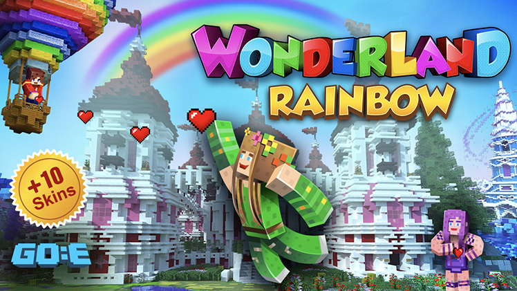 Unleash your creativity in the map “Rainbow Wonderland” within Minecraft Bedrock! Engage in role-playing amidst grand castles, luxurious hotels, and… lush forests! Take a ride on hot air balloons, meet tiny little inhabitants, and relish life in the vibrant city of GoE-Craft!