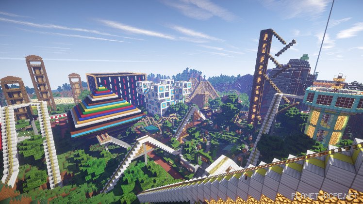 Imagine a vast amusement park featuring 38 roller coasters, games to enjoy with friends, food stalls, and much more. Now think about the effort required to build such a place, and be grateful that builder Daan B has done it for you! His roller coaster paradise took 200 hours to create, but it’s now open for you in Minecraft PE.