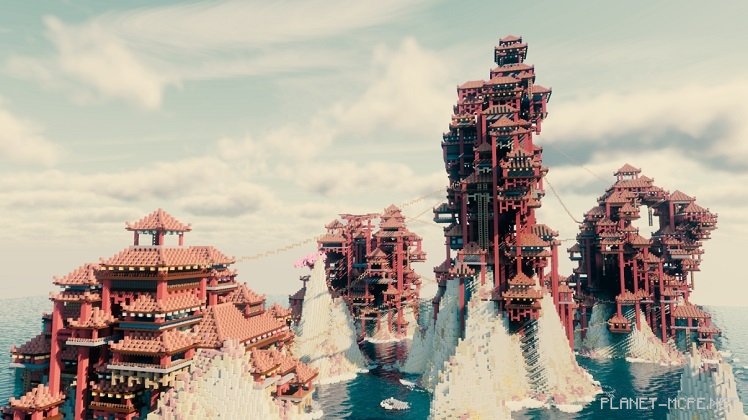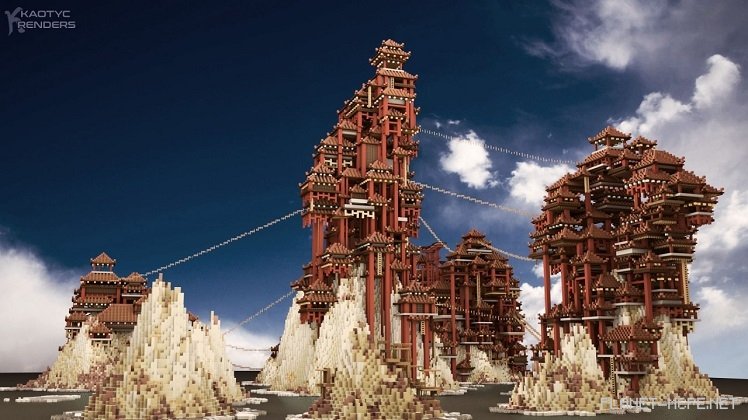 I hope you are mindful of where you step while walking. This is particularly crucial for today’s build, as the entire structure appears quite precarious and unstable. The creators behind this project are two friends, Shannooty and Aegos. Their constructions are referred to as “pagodas,” which draw inspiration from Buddhist culture. When I gaze upon them, it feels reminiscent of Atlantis rising once more from the ocean depths. The only notable difference is the numerous chasms and empty spaces between the buildings that one could easily fall into if moving carelessly or hastily. We care about your safety, so we kindly ask you to be cautious while exploring this assembly.