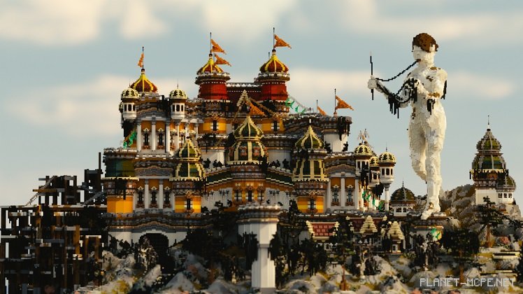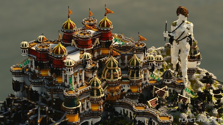 Introducing Gareos, a vast city adorned with stunning dome-shaped structures scattered throughout the landscape. However, the most striking feature of this build is an enormous white statue that watches over all who dare to enter the city. If you feel that the statue instills fear and turns your exploration into a tense mission, rest assured—this was indeed the intention. The creator, Kubik, deliberately designed such a statue. After all, who wouldn’t want their creation to intimidate anyone brave enough to gaze upon it?