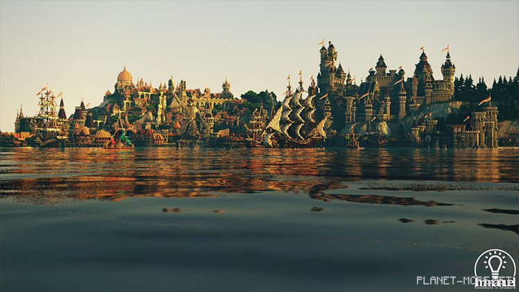 “Planning is quite simple,” explains ElysiumFire. “Our planners play a crucial role in terraforming… they start sketching out plans: drawing street lines on the ground, establishing positions, junctions, gardens… gradually covering the entire area in MCPE.” This is a port city, suggesting enormous, towering ships in the harbor, grand stone bridges spanning rivers, and long slender docks reaching toward vessels like fingers.
