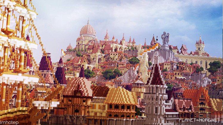 You can see the European influence in the buildings throughout the world of Minecraft PE: red rooftops, cathedral domes, columns aplenty, and such a vast city that exploring every alleyway would take several days in MCPE.