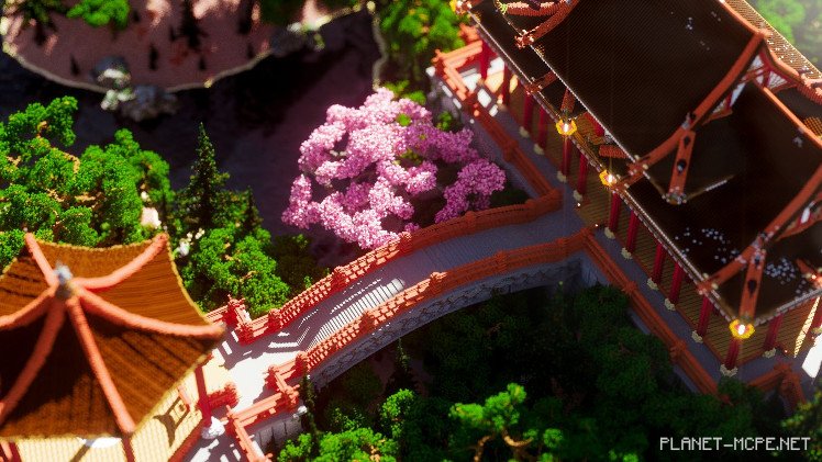 Amazing temples! Lush pink flowers! The garden is so stunning that I would burn my own garden (and dry out the soil to prevent anything from growing) out of envy! Yes, it’s fair to admit that I am a huge admirer of today’s showcased structure, a Japanese marvel crafted by the building team Minecraft PE Apenda.