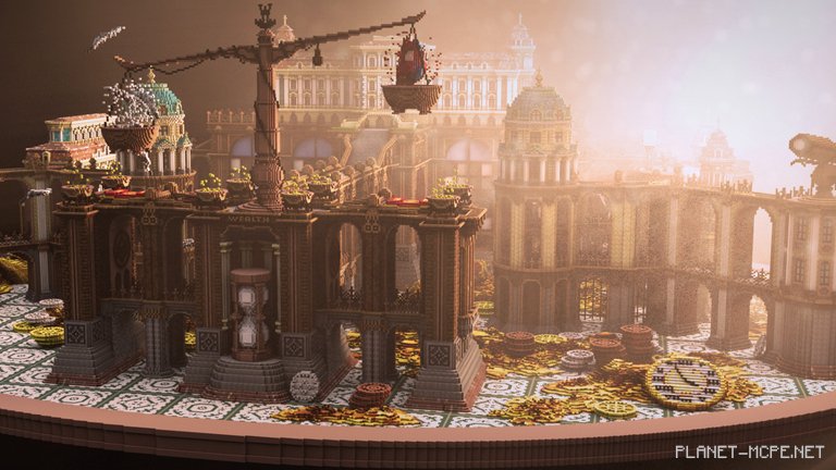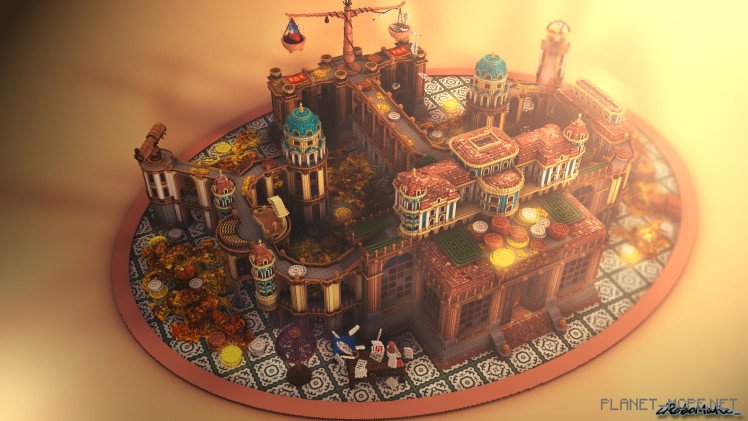 However, one can certainly purchase luxury and beauty with wealth. Just take a look at his magnificent home. Piles of enormous gold coins are carelessly scattered around. A villa perched atop a grand palace in Minecraft PE.