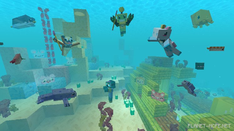 Of course, you can only acquire these textures from the Marketplace. There, you’ll encounter not just delightful bunnies, but also unicorns, bees, and even hamburgers! In addition to all these joyful elements of life, you will also be able to obtain 15 different skins for your Minecraft PE experience.