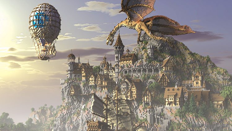 To enhance the village’s realism, Bishop utilized new blocks from Minecraft Pocket Edition called “Ripped Wood,” featuring a pleasant light brown hue mixed with grass, stone, and dirt, perfectly complementing the surrounding landscape. Perhaps the dragon is the only element not made from realistic materials, primarily consisting of planks and sandstone. While I’ve never encountered real dragons, something tells me that combining fire and wood isn’t the best idea…
