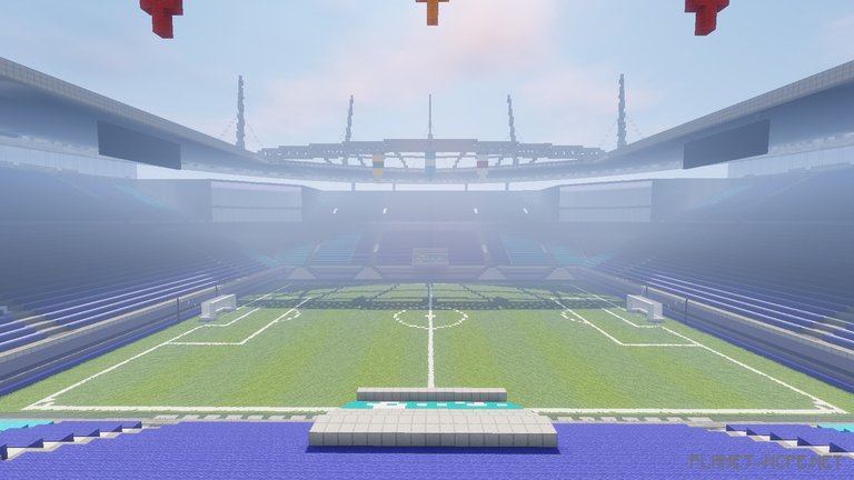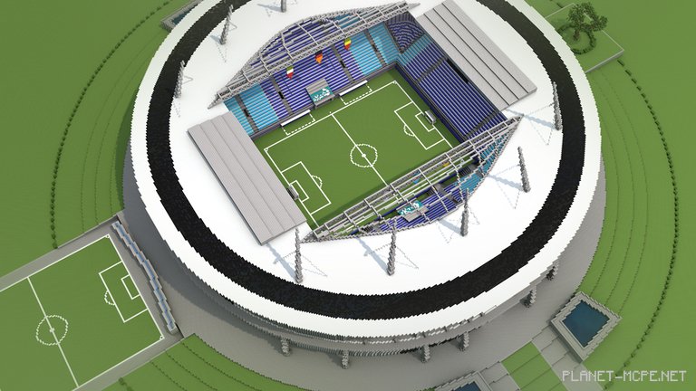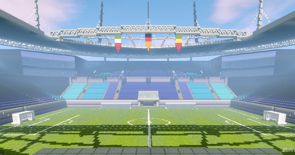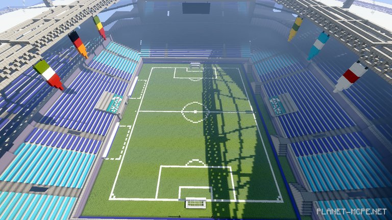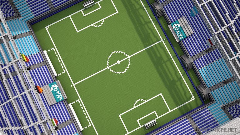 A 16-year-old American builder, SeanBits, likely favors the term football. Not only has he played it since he was nine years old, but he also recently decided to incorporate his long-standing hobby into Minecraft Pocket Edition by ambitiously constructing a full-sized stadium worthy of the World Cup.