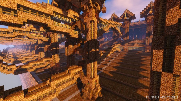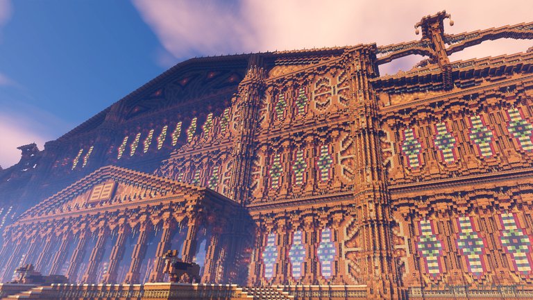 The library boasts an astonishing level of detail seldom seen in projects of this scale (I can’t even imagine how much time went into creating it all). The tightly packed mud blocks seem to press down on us, sometimes making it feel hard to breathe. The interior is equally heavy: intricate wall decorations and diverse floor patterns are crafted without a single block appearing gloomy or oppressive.