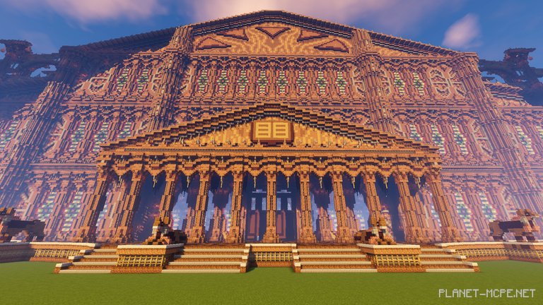 “You can explore all levels of the building, both inside and out,” explained DestrucitveBurn. “You can even climb to the top of the tallest shelves. This is very convenient if players want to add real books.” If reading isn’t your thing, you can admire other structures nearby. For instance, animal statues surround the library, built to bring an Egyptian flair to the assembly.