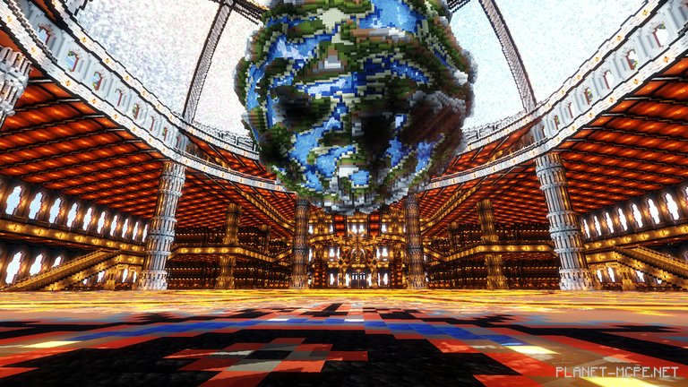 However, the most striking feature of the entire building lies at its center, beneath a massive glass dome—a gigantic model of our planet!