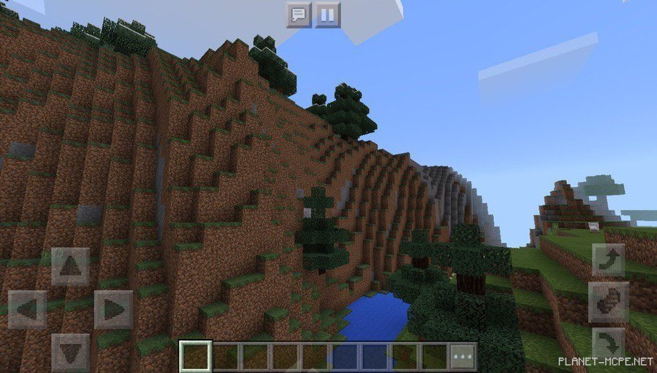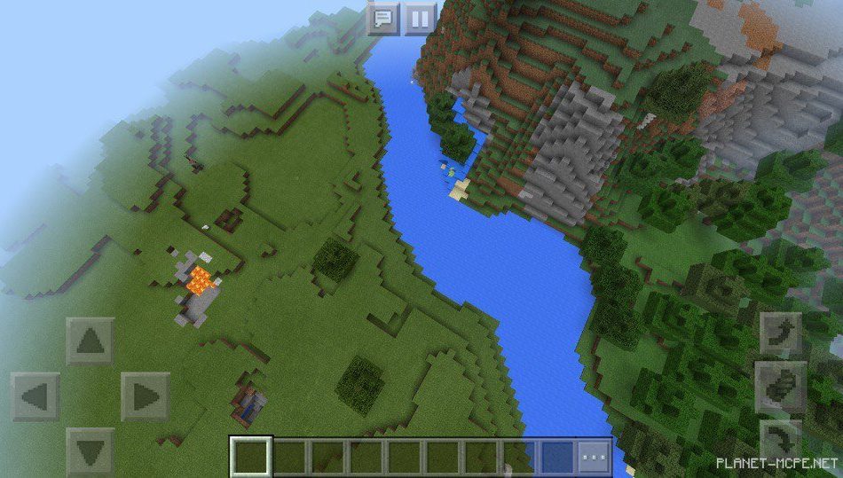 In Minecraft Pocket Edition, there is also a long river flowing next to the mountain and forest, along with a small lava spring nearby, as well as a cave featuring a little waterfall on the MCPE site.