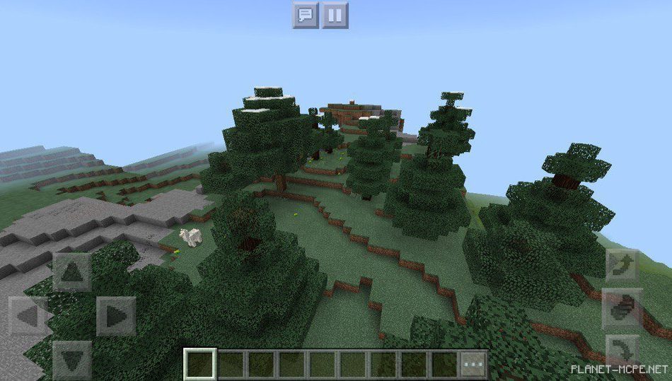 On this site in Minecraft Pocket Edition, you can discover a small area filled with coniferous trees in Minecraft PE, along with some snow on the ground of MCPE.