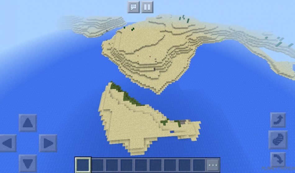 If you’re looking to gather more resources in Minecraft Pocket Edition, swim straight ahead, and you’ll encounter a desert in Minecraft PE, as well as other islands on the MCPE platform.