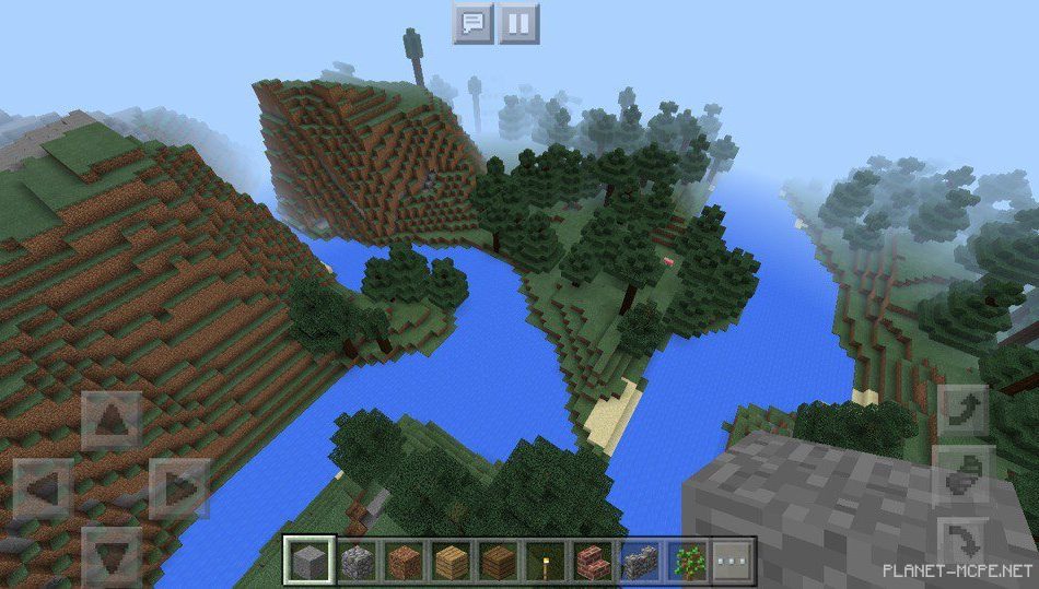 Additionally, there are stunning landscapes nearby; you can see forests bordered by rivers in Minecraft PE. This scenery is quite appealing on the MCPE platform.