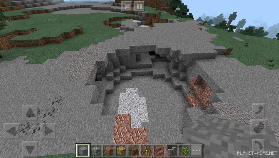 On this seed in Minecraft Pocket Edition, you will spawn near a perfectly round pit in Minecraft PE 1.2.
