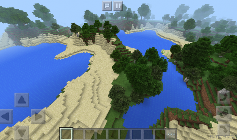 On this seed in Minecraft Pocket Edition, you will discover numerous bodies of water, along with a coastline that features both forest and sandy shores on the Minecraft PE platform.